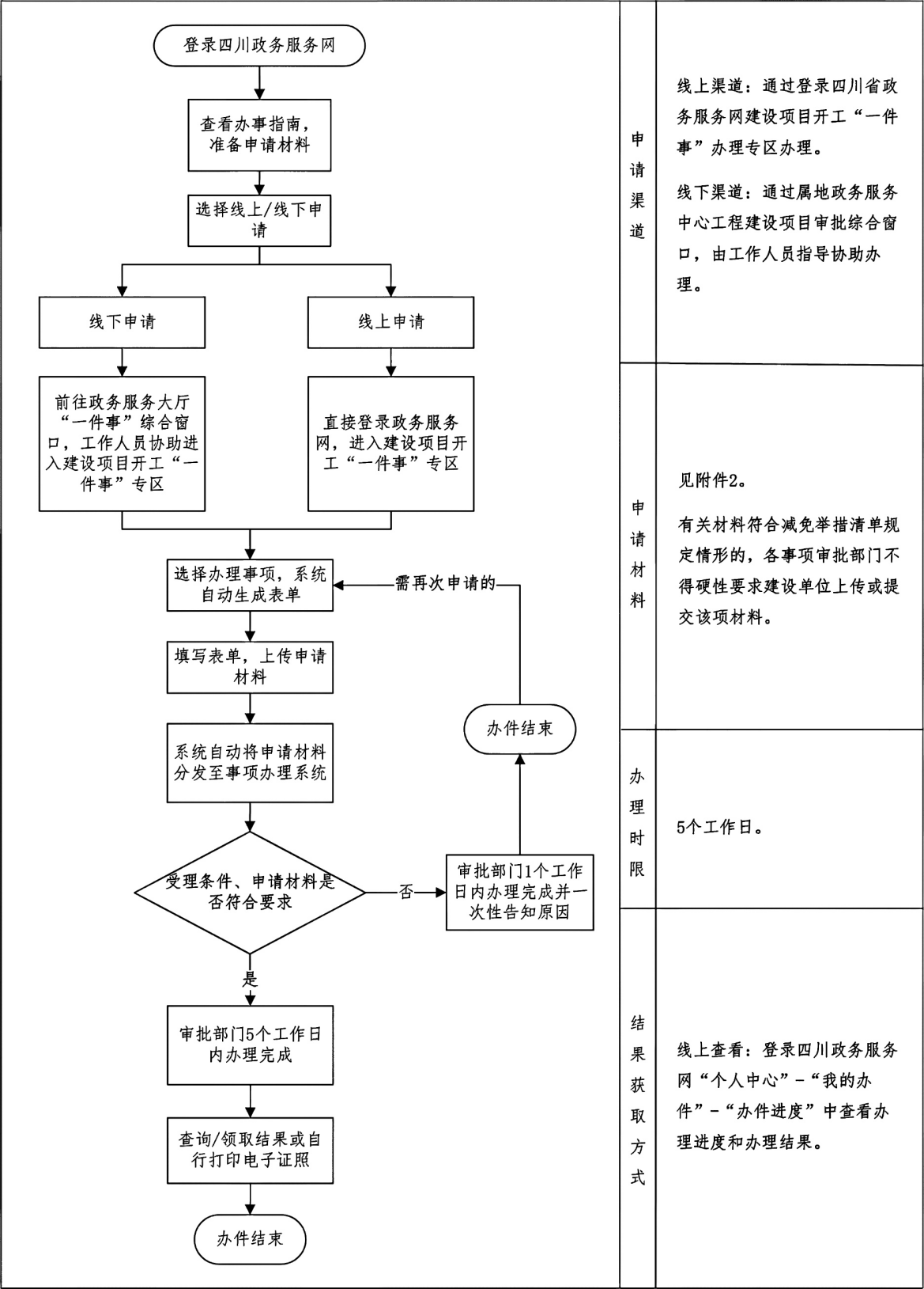 (一)线上渠道。通过登录四川省政务服务网建设项目开工“一件事”办理专区办理。